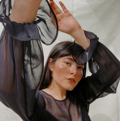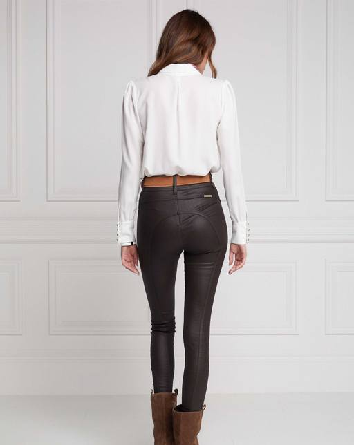 Faux leather blouse with voluminous sleeves